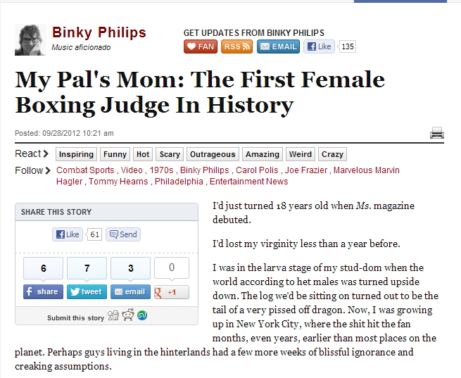 The first woman professional boxing judge in the world, Carol Polis's life is one of personal triumph against long odds. Having officiated 27 title fights plus two high-profile non-title heavyweight fights with Mike Tyson and Larry Holmes, Polis, a single parent and recent cancer survivor, has an amazing, historically significant story to tell. The 1970s were a time of great upheaval for women. There was Roe v. Wade and the Equal Rights Amendment. There were Gloria Steinem, Billie Jean King, Golda Meir, and Carol Polis. In 1971, Carol Polis married a part-time professional boxing referee. Within two years, she went from being a squeamish spectator to a professional boxing judge-the first woman ever to do so. As luck would have it, not only was this period the golden age of women's rights, it was also the golden age of boxing. Carol Polis had a ringside seat for all of it. Sometimes she was the main event. From cutting her teeth on three-round undercard fights at the gritty Blue Horizon in Philadelphia to finding herself at the center of a riot at Madison Square Garden; from being schooled in Joe Frazier's sweat drenched gym on North Broad Street to officiating in a Don King tournament and being investigated by the FBI; from following the careers of local fighters like Boogaloo Watts and Willie "the Worm" Monroe to becoming a personal guest of Muhammad Ali; from speaking at the nearby Rotary Club to appearing as a contestant on What's My Line and To Tell the Truth, five-foot-one, 115-pound Carol Polis, for better or for worse, was treated as an ambassador for all women, a novelty, and even a misfit. Polis was bound by none of these labels. First and foremost, Carol Polis was a mom. When her marriage breaks up in 1977, Polis's life becomes more a matter of survival than knockouts. It is while keeping a roof over her kids' heads and later raising her grandson that Polis earns her heavyweight belt.
